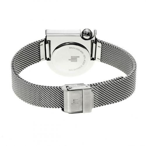 MACH 2000シリーズは、人間工学に基づいて作られた非凡でユニークなコレクション。ダークマスターLIPクロノグラフは、時計デザインの世界で最も象徴的なタイムピースの一つです。デザインの先駆者であるロジャー・タロンが手がけたMACH 2000は、古典的な時計デザインを覆した左右非対称の斬新なデザイン。時刻を読み取りやすく、操作性に優れたモデルとして細部まで配慮されたフレンチデザインを象徴するモデルです。 リップはあらゆる女性に向けて個性とエレガンスを融合させた特別な一本をデザインしました。MACH 2000 MINIは、どんなシーンにもマッチする洗練されたフォルムと、遊び心あふれるディテールが魅力です。ポリッシュ仕上げの316Lステンレススチールケースは、光沢感のあるシルバーのミラネーゼメッシュブレスレットと完璧に調和。ベルトは工具を使って簡単に交換可能な仕様なので、季節やスタイルに合わせたカスタマイズが可能です。 文字盤には洗練されたシルバーの針を配置し、ブラックの時針がアクセントとして際立つデザインに。シンプルながらもユニークなディテールが、さりげなく個性を演出します。モダンでありながらクラシックな魅力を持つこの時計は、どんな装いにも洗練された輝きを添え、あなたの手元を美しく彩ります。 【洗練されたデザインと高品質の腕時計「LIP/リップ」】 LIP(リップ)は1867年にフランス東部の街、ブザンソンでエマニュエル・イザーク・リップマンが創業したフランスを代表するウォッチブランドです。LIPの時計は、ナポレオン1世に贈呈されたことによって一躍有名になりました。また、自国のシャルル・ド・ゴール元大統領やマクロン大統領に愛用され、英国チャーチル元首相、米国アイゼンハワー元大統領、クリントン元大統領に贈呈されるなど「大統領の時計」と呼ばれています。 LIPはクラシックな時計作りに長けていた一方、フランス国有鉄道“TGV”のデザインを手がけたフランス産業デザインの先駆者であるロジェ・タロン氏による左右非対称の斬新なデザインの「MACH2000(マッハ2000)」シリーズを1975年に復刻するなど、フレンチデザインを象徴する腕時計をも生み出しました。「フランスにリップあり」と称され、150年以上に渡り、フランス・ブザンソンの工場で一つひとつ丁寧に組み立てられているコレクションの数々は、決して流行だけに留まらない独自の魅力を備えています。