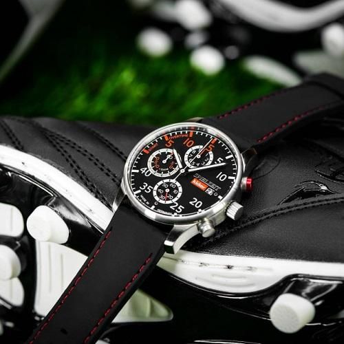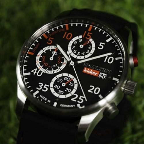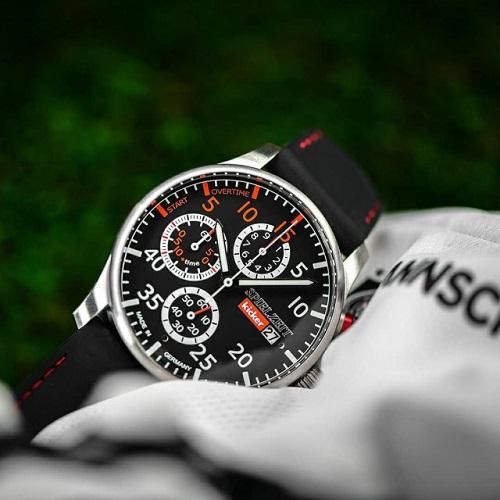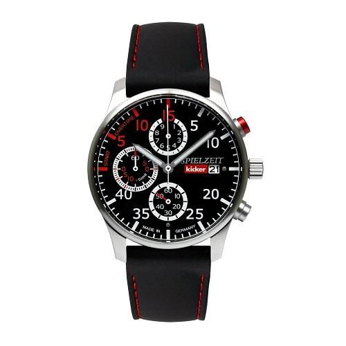 『Kicker/キッカー』は、歴史的な飛行船や戦闘機の名前をブランドの冠に展開しているドイツの時計メーカーであるPOINTtec.(ポインテック社)が、ドイツのタブロイド判のスポーツ新聞「キッカー(Kicker-Sportmagazin)」とコラボした本格的なサッカーレフェリー仕様の腕時計ブランドです。 3578-2QZは、クォーツ・クロノグラフ機能を搭載した腕時計。日本未発売の限定品、希少モデルです。1/20秒計、60秒計、60分計、6時方向スモールセコンド、デイトカレンダー、ストップウォッチなど多機能でありながら、スッキリとした文字盤。スタート&ストップのボタンや目盛りはお洒落なアクセントになる赤色にデザインし、3時方向のカレンダー箇所にはSPIELZEIT(試合時間)の文字とKickerのロゴを配置。裏ブタにもKickerのロゴを刻印しました。 ゲームの流れを見逃さずに、サッカー試合時間のみならず、ロスタイムやアディショナルタイムを計れる腕時計でゲームを目一杯楽しみましょう!!正にサッカーファンにおすすめの腕時計です。また、本格的な時計の機能を搭載しながらもスッキリしたデザインなので、ビジネスシーンにもぴったり。大切な方や新社会人の方へのプレゼントおすすめです。 ■ ポインテック社は日本でも人気の高いZEPPELIN(ツェッペリン)、JUNKERS(ユンカース)、IRON ANNIE(アイアンアニー)、BAUHAUS(バウハウス)などの数々のブランドを創設している腕時計の老舗です。「独自のデザイン」、「優れた価格性能比」、そして「高い品質のドイツ製品で傑出した時計を生み出すこと」を誓い、高品質な時計を作り続けており、ポインテック社が展開するブランドの腕時計は品質が良く価格も比較的お手頃と評判です。