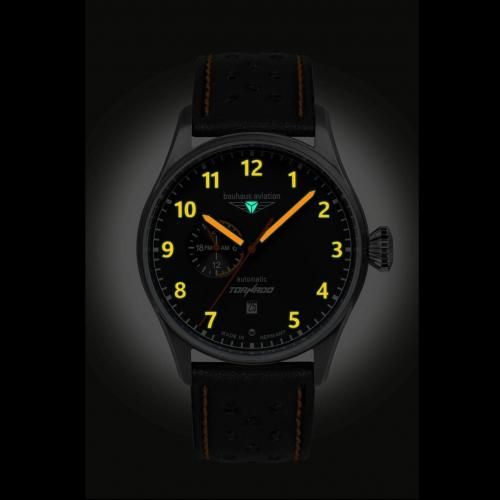 日本でも人気の高いZEPPELIN(ツェッペリン)、JUNKERS(ユンカース)、IRON ANNIE(アイアンアニー)などの数々のブランドを創設しているドイツ腕時計の老舗ポインテック社が、2019年にリリースしたブランドBAUHAUS(バウハウス)。バウハウス理念”Form follows function”を基に、過度な装飾を排除したシンプルで機能的な美しさを象徴する”洗練されたデザイン”の腕時計です。 シンプルを追求するほど本当に難しく、デザイン性が要求されると言われている中、バウハウスとパイロットウォッチのデザインを融合させたワンランク上の新悦モデル「Bauhaus Aviation / バウハウス アビエーション」が完成しました。 ”Bauhaus Aviation 2764-5AT”は、トーネード戦闘機をモチーフにデザイン。9時方向に24時間表示針、6時方向にデイトカレンダーを採用したシンプルな視認性に優れたデザインの自動巻き腕時計です。ブラックの文字盤に映えるオレンジ色のインデックスがアクセントになってモダンさが引き立ちます。 また、オレンジ色のステッチを施したベルトは、ラリーデザインのパンチングとダブルピンがジャスト位置で最高満足度のストラップに完成。暗闇でも時間が確認できる蓄光塗料がインデックスに施されているので、一日中いつでもどこでも時間の確認がスムーズです。スポーティーで魅惑的な外観を醸し出したメンズ・アナログパイロットウォッチです。 --- バウハウスとは --- 1919年から14年間、工芸、写真、デザイン、美術、建築など総合的な教育を行っていた美術学校です。その歴史は短いながら、功績は大きく、モダンデザインの基礎を作り、今もなお世界中の建築やデザインなど、あらゆる分野に計り知れない影響を及ぼしています。現在では様々なバウハウスデザインの時計が開発・発売されていますが、バウハウスのライセンスを正式に取得し「bauhaus」の名を名前にしたブランドはポインテック社のみです。