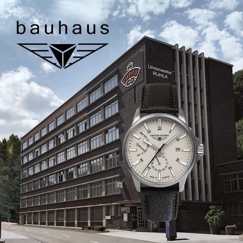 日本でも人気の高いZEPPELIN(ツェッペリン)、JUNKERS(ユンカース)、IRON ANNIE(アイアンアニー)などの数々のブランドを創設しているドイツ腕時計の老舗ポインテック社が、2019年にリリースしたブランドBAUHAUS(バウハウス)。バウハウス理念”Form follows function”を基に、過度な装飾を排除したシンプルで機能的な美しさを象徴する”洗練されたデザイン”の腕時計です。 シンプルを追求するほど本当に難しく、デザイン性が要求されると言われている中、バウハウスとパイロットウォッチのデザインを融合させたワンランク上の新悦モデル「Bauhaus Aviation / バウハウス アビエーション」が完成しました。 2366-3ATは、3時方向にデイデイトカレンダーを搭載したオートマ腕時計。裏蓋はシースルーバックで機械式ムーブメントの動きを楽しむことができます。ダークブルーの文字盤に、ホワイト×グレーのツートーンの3針とバーインデックスをデザイン。統一感があり、シンプルな中で良いアクセントになっています。 時代を超越したレトロなデザインと機能美がマッチし、あらゆるシーンで活躍する人気の美しい時計。ダークブルーの文字盤とグレーのステッチを施したベルトがエレガントでお洒落な仕上がりです。カジュアルウォッチとしてもオススメ。 --- バウハウスとは --- 1919年から14年間、工芸、写真、デザイン、美術、建築など総合的な教育を行っていた美術学校です。その歴史は短いながら、功績は大きく、モダンデザインの基礎を作り、今もなお世界中の建築やデザインなど、あらゆる分野に計り知れない影響を及ぼしています。現在では様々なバウハウスデザインの時計が開発・発売されていますが、バウハウスのライセンスを正式に取得し「bauhaus」の名を名前にしたブランドはポインテック社のみです。