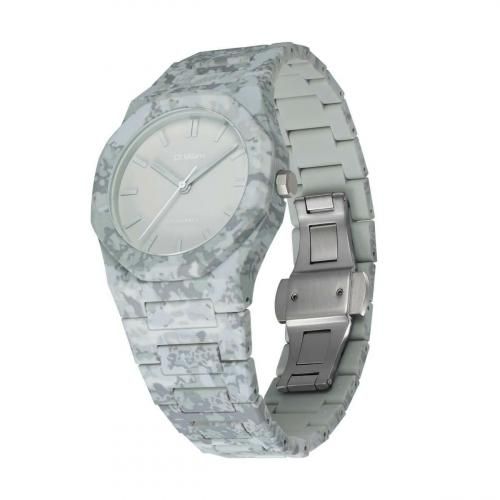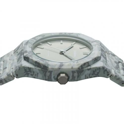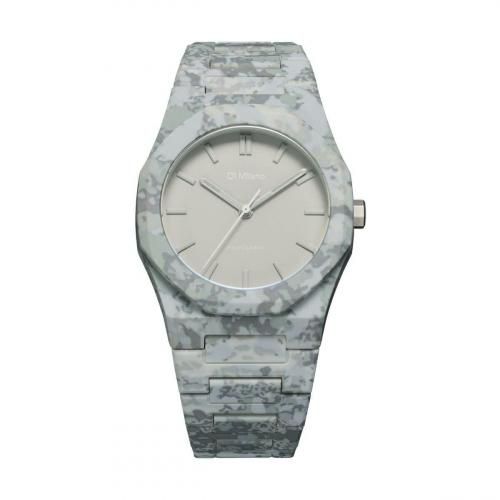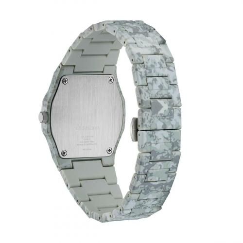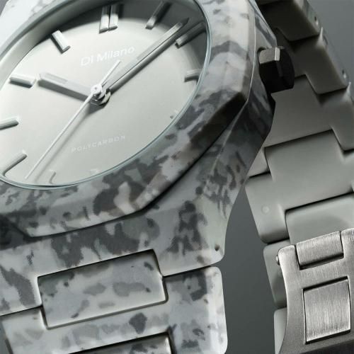 D1 MILANOの人気モデル「ポリカーボン」のカモフラージュモデル。時代を超越しながらも革新的な特徴を備えた、洗練された仕上がりの時計です。 ケースにグレーベースのフォレストカモ柄を採用したミリタリーライクな一本。 軽量で耐久性の高いポリカーボネートを本体素材に採用し、ファッションウォッチとしての遊び心が詰まったモデルです。D1 MILANO純正ボックスが付属しますので、大切な方へのプレゼントにも最適です。 D1 MILANOの時計細部へのこだわり ●各パーツの仕上げや素材 針、インデックス、リューズ、バックケース、バックルなどの各パーツは、ブラッシュ仕上げまたはサンドブラスト仕上げの316低炭素グレードのステンレススティールで作られています。 ●ベルトへのこだわり 高品質のプラスチックにソフトタッチコーティングを適用し、しなやかな感触とマットな質感を醸し出しています。留め具には着脱が簡単な「バタフライ型」留め具を採用しています。 ●フェイスデザイン・視認性 視認しやすい立体的なインデックスを採用。アンチブルーライトリフレクション加工の風防と合わせて、快適な使用感を演出します。 ●ケースバックのデザイン ケースバックにはブランドロゴと共にシリアルナンバーが刻まれています。 D1 MILANOは、2013年にファッション都市ミラノで生まれた、イタリアの高級ファッション時計ブランドです。1970年代ファッションからインスパイアされた、クリアでソリッド感のあるデザインが特徴。個性を生かし、誰が見ても格好いいと感じる時計作りをモットーに、「強い形状」「細部と美学へのこだわり」を備え、イタリアの伝統を継承しつつ、より進化したイタリアブランドを生産しています。D1 MILANOは、貴方のファッションを完成させる最後の一ピースとなるでしょう。